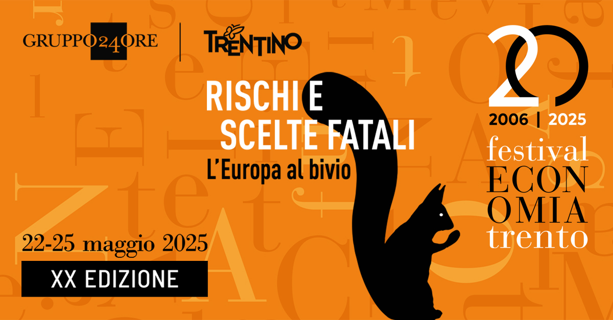 Sarà un’edizione speciale quella che dal 22 al 25 maggio 2025 festeggerà il 20esimo anniversario del Festival dell’Economia di Trento, una manifestazione che negli anni è cresciuta e ha saputo rinnovarsi, anche grazie alla nuova formula ideata dal Gruppo 24 ORE insieme a Trentino Marketing nel ruolo di organizzatori per conto della Provincia Autonoma di Trento e con il contributo del Comune di Trento e dell’Università di Trento. Una formula vincente che ha portato il “popolo dello scoiattolo” a crescere in modo straordinario arrivando a oltre 100.000 presenze in tre anni.