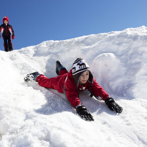 A poco più di un km dalle piste da sci, nella conca delle Viote piccoli (e grandi) possono trovare uno spazio per slittare recintato e sicuro, accanto allo spazioso parcheggio del rifugio.