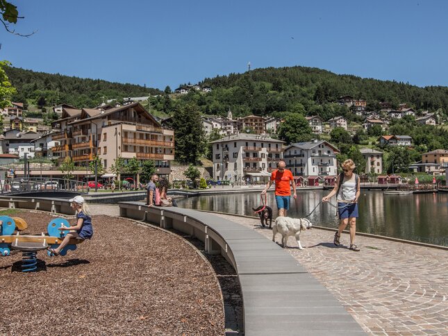 Il lago della Serraia è uno dei simboli di Baselga di Piné. Si trova a pochi passi dal centro e offre un comodo percorso pedonale che segue gran parte delle sue rive. In estate puoi alternare il cammino a una sosta sui prati, una nuotata o un giro in barca; nelle altre stagioni il lago diventa un luogo di cammino tranquillo, con la luce che cambia dal mattino alla sera.