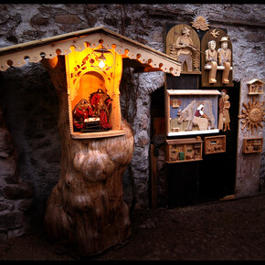 Il secondo elemento è legato al periodo natalizio, quando Miola si trasforma nel cosiddetto “Paese dei Presepi”: cortili, finestre, nicchie e angoli di strada ospitano presepi di materiali e dimensioni diverse. Passeggiare al calar del buio tra le vie addobbate permette di vivere una dimensione raccolta della festa, fatta di luci discrete e di piccoli dettagli creati dagli abitanti.
