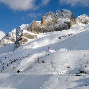In inverno, il passo diventa parte di una grande area sciistica collegata. Da qui puoi entrare nel Sellaronda con gli sci ai piedi, spostandoti tra Col Rodella, Belvedere e gli altri versanti. Le piste offrono tracciati per diversi livelli di esperienza, e molte strutture ricettive si trovano direttamente a bordo pista. Esistono anche itinerari per ciaspole e percorsi a piedi per chi desidera vivere il paesaggio innevato senza sciare.