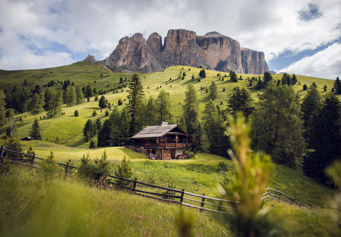 Da questi luoghi puoi osservare il mutare della luce sulle pareti, seguire l’ombra del Sassolungo che si sposta sui prati, riconoscere la linea della Marmolada in lontananza. Fermarti in rifugio non è solo una pausa pratica: è un modo per restare un po’ di più e dare al paesaggio il tempo di cambiare davanti a te.