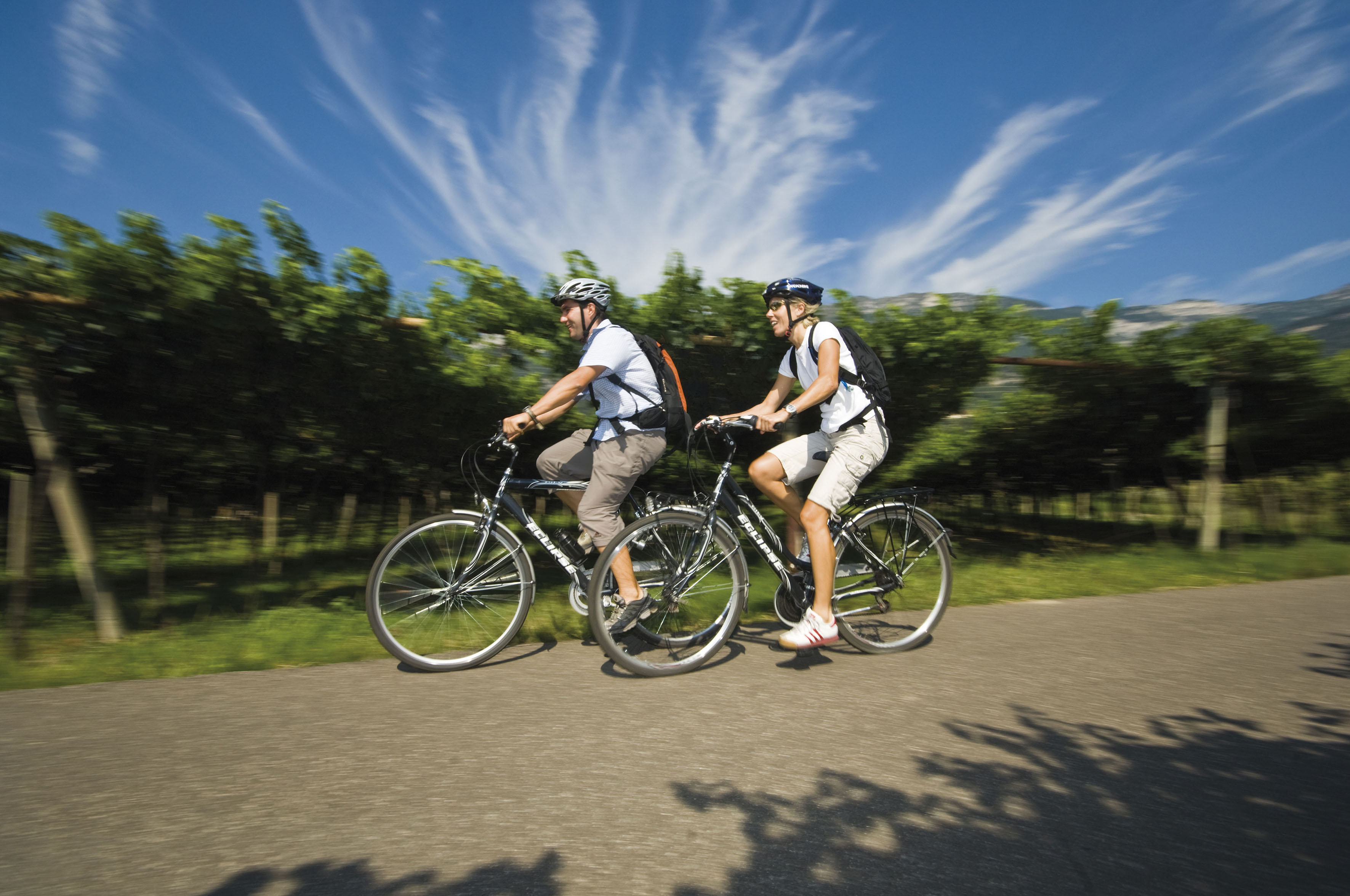 Dalla Piana Rotaliana a Borghetto lungo le strade arginali del fiume Adige, tra vigneti e campi coltivati toccando le città di Trento e Rovereto