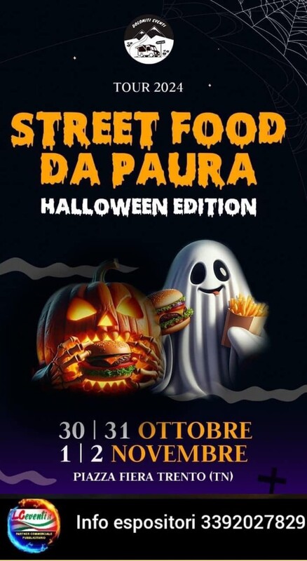 "Street Food da Fora" is a culinary event that will be held from Wednesday 30 October to Saturday 2 November 2024 in Piazza Fiera in Trento on the occasion of the Halloween Festival. This event combines a passion for street food, "street food" with the mysterious and fun atmosphere of Halloween, creating a unique experience for visitors.