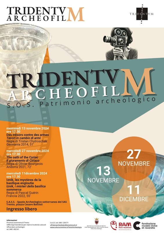 The archaeology-themed cinema arrives at SASS – Spazio Archeologico Sotterraneo di Trento, in Piazza Cesare Battisti, with the initiative "Archeofilm a Tridentum. SOS archaeological heritage." The event, organised by the Archaeological Heritage Office of the UMSt Superintendence for Provincial Cultural Heritage and Activities, in collaboration with the RAM Film Festival (Rovereto Archeologia Memorie) and the Fondazione Museo Civico di Rovereto, proposes three film evenings scheduled for 13 and 27 November and 11 December 2024.
