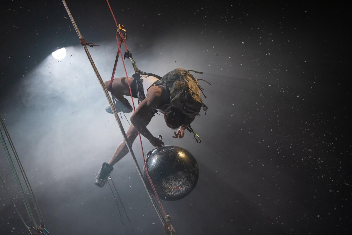 Alpinism and sport climbing, two passions of Piergiorgio Milano, a choreographer dedicated to the interaction between dance, contemporary circus, and theater, are at the center of White Out, a visionary show whose title defines, for climbers, the extreme condition of total loss of visibility and orientation. Evoking a natural landscape on stage, three climbing performers embark on an initiatory journey where interiority and the spirit of survival meet effort and acrobatics. Here, climbing becomes an artistic language in an enchanting visual synthesis in which the audience is fully engaged: they are on the snow, amidst the elements, near the precipice just like the protagonists, accompanied by stories drawn from the most renowned thematic literature and from Milano's own alpine experiences. With White Out, the immensity and thrill of the mountain enter the theater.