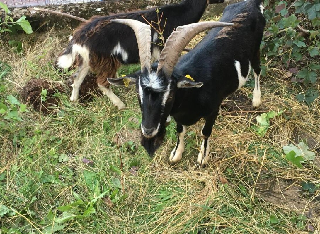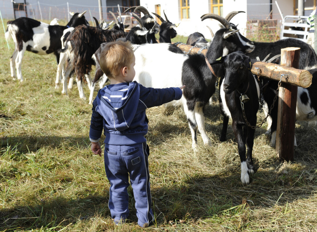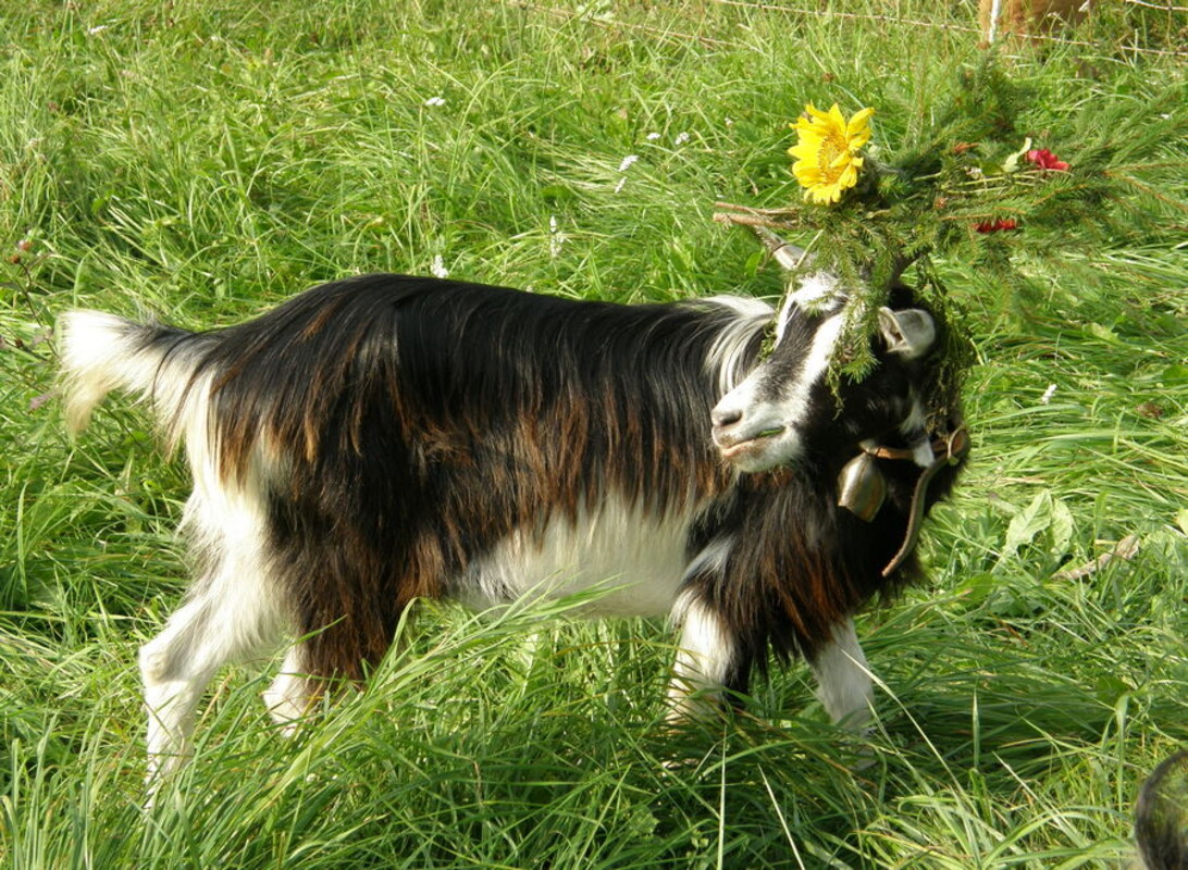 Animal fair with a display of spotted goats, with an award ceremony for the best specimens.