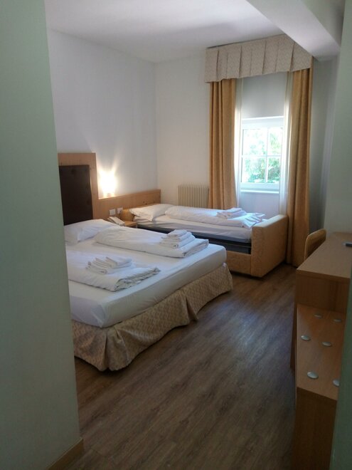 Tweepersoonskamer met een tweepersoonsbed of twee eenpersoonsbedden + comfortabele eenpersoons slaapbank.