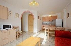 Appartement met één slaapkamer, uitgerust met een tweepersoonsbed, een badkamer, woonkamer met een kitchenette en twee eenpersoonsslaapbanken, balkon.
