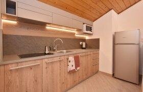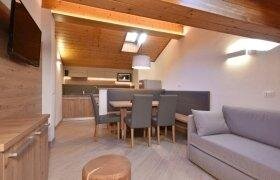 appartement met één slaapkamer met een tweepersoonsbed + een eenpersoonsbed, een badkamer, woonkamer met kitchenette en twee comfortabele eenpersoons slaapbanken.