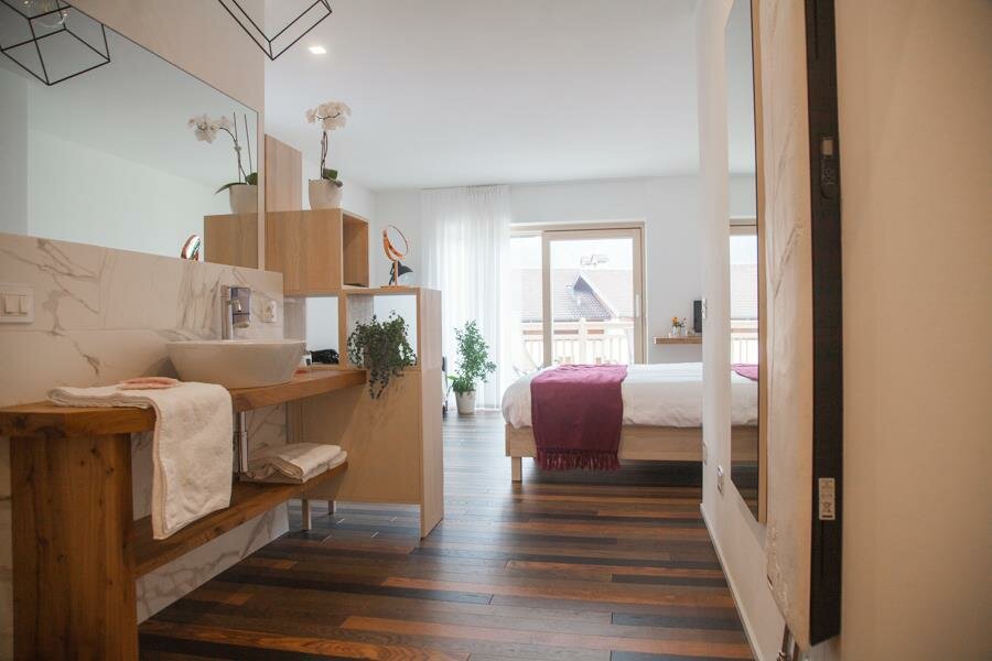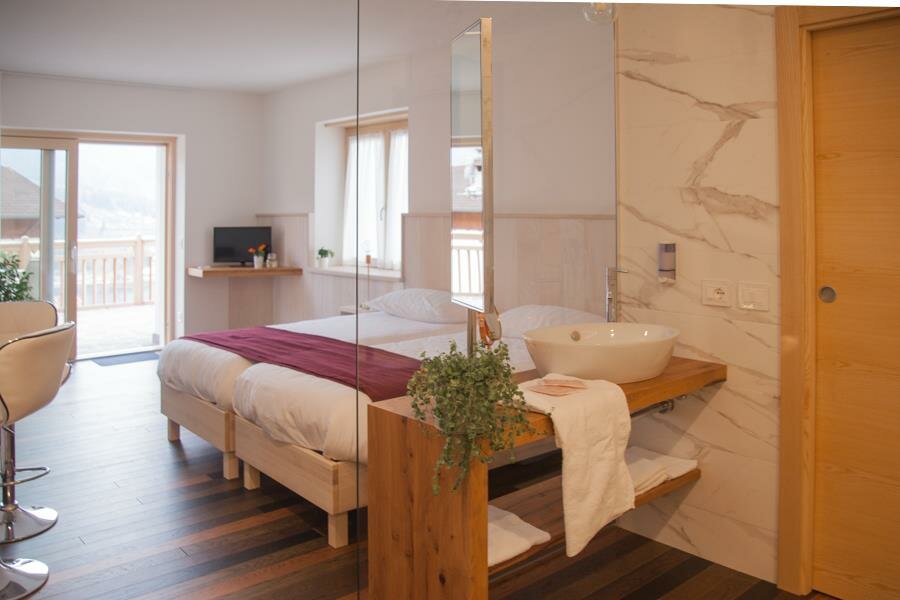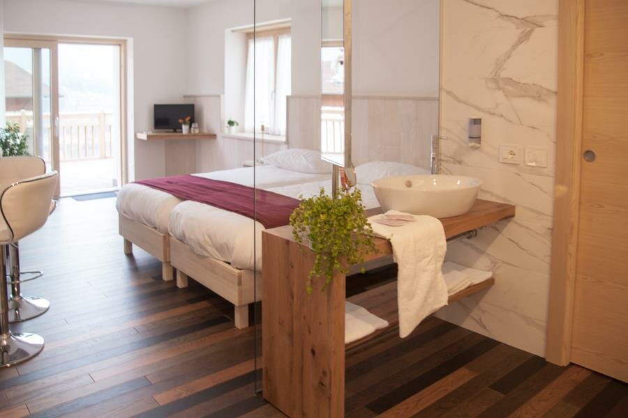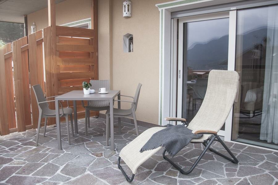 Ons huis biedt twee gloednieuwe, ruime en lichte kamers, ingericht in een modern ontwerp, maar met respect voor de traditie door het gebruik van hout. Beide kamers hebben een groot terras met stoelen, tafel, parasol en uitzicht op het meer en de bergen.