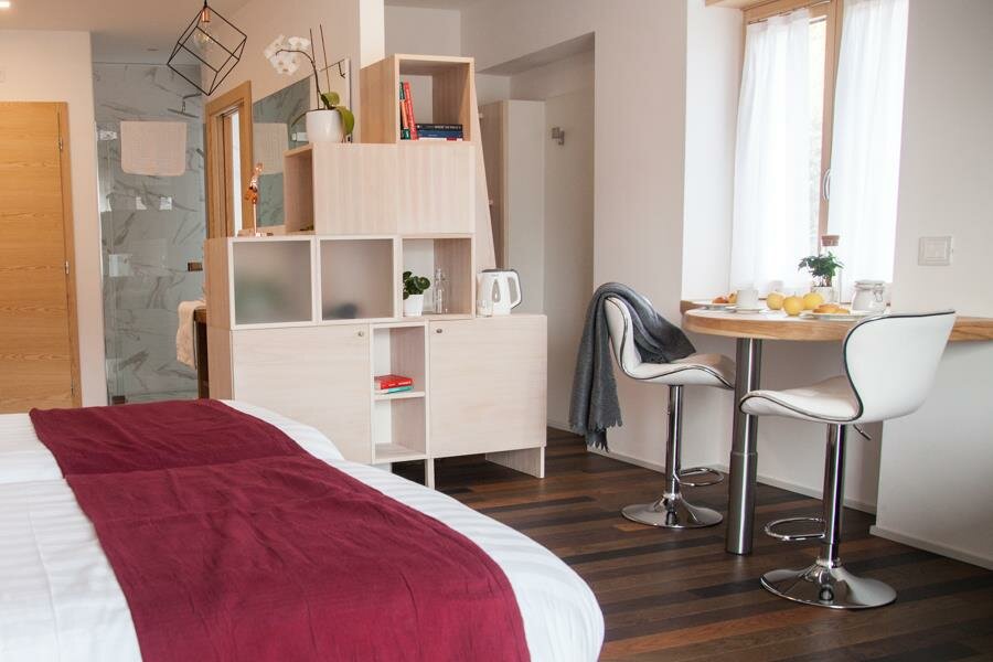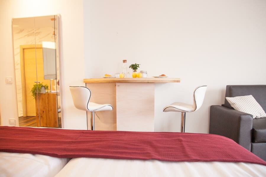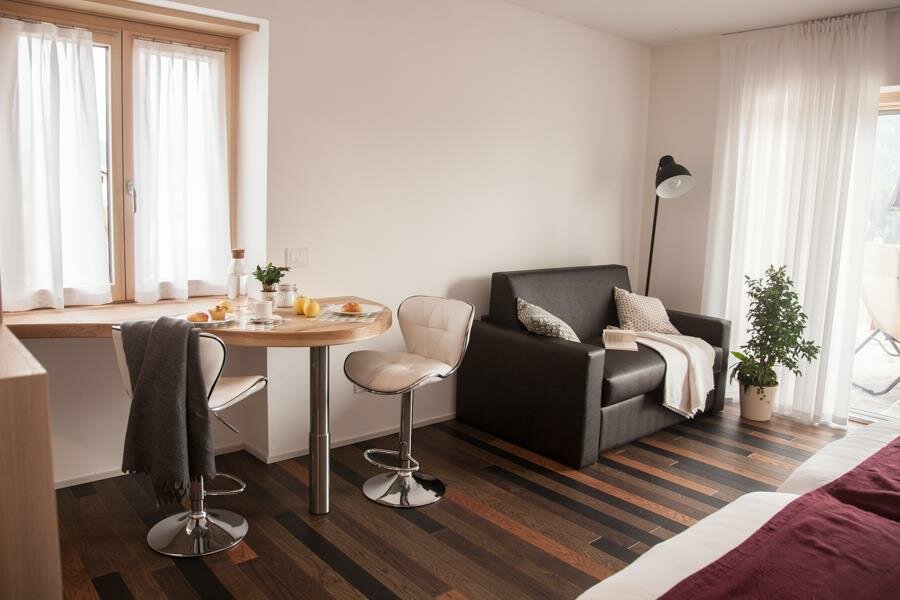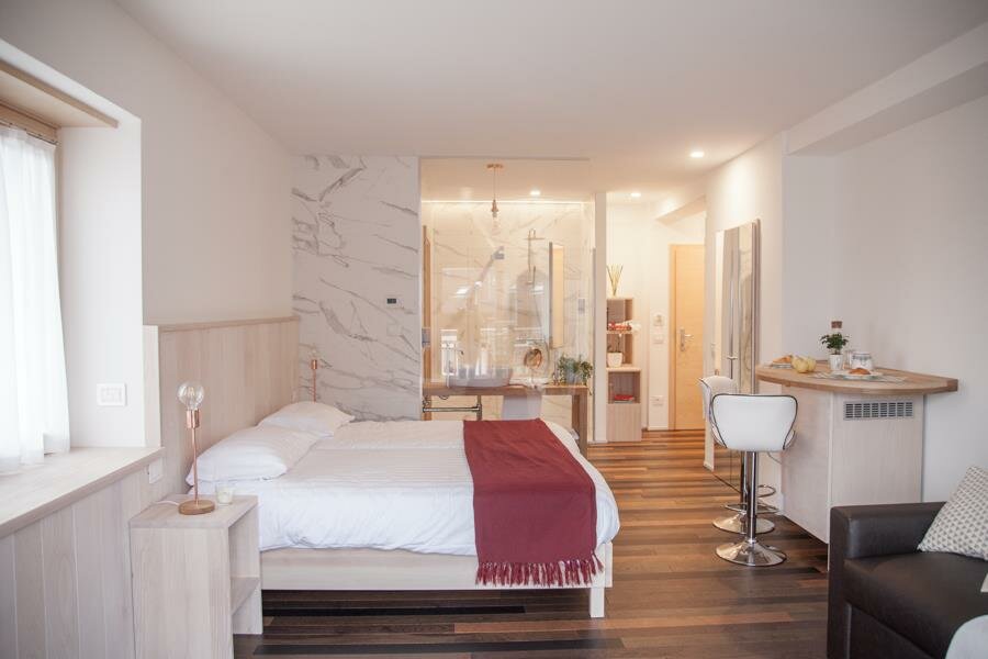 De kamers zijn ideaal voor een stel dat zich een paar dagen ontspanning wil gunnen of voor drie vrienden die samen in dezelfde kamer willen slapen maar in aparte bedden; de bank kan namelijk worden omgevormd tot een comfortabel bed.