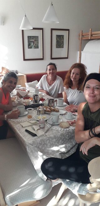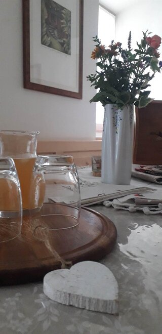 In de warmere en zonnigere seizoenen kunt u op uw gemak ontbijten aan de "grote tafel" in de tuin!