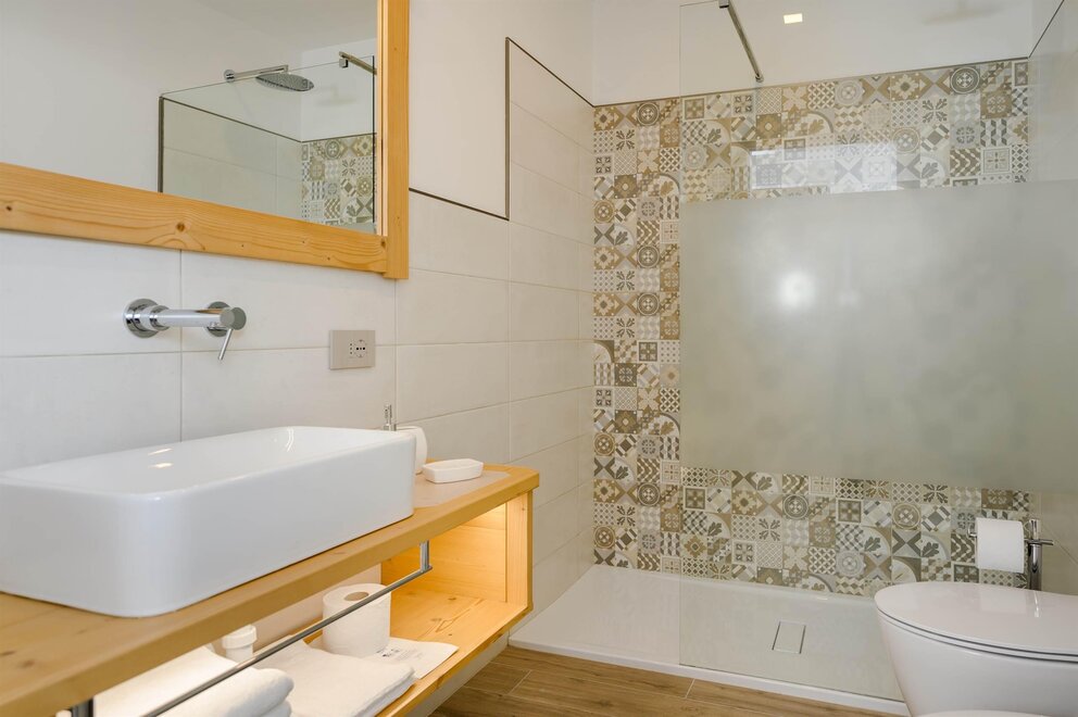Noordse stijl, modern en functioneel ontwerp, handgemaakte meubels van lokaal hout. Voorzieningen; haardroger, set handdoeken, zeep/shampoo dispenser.