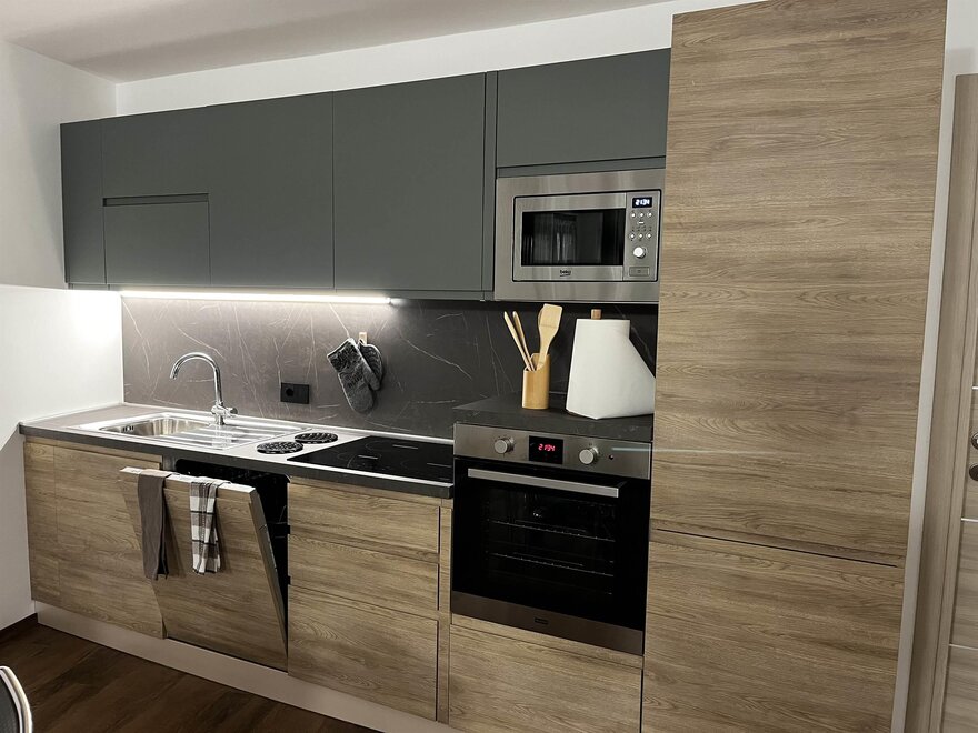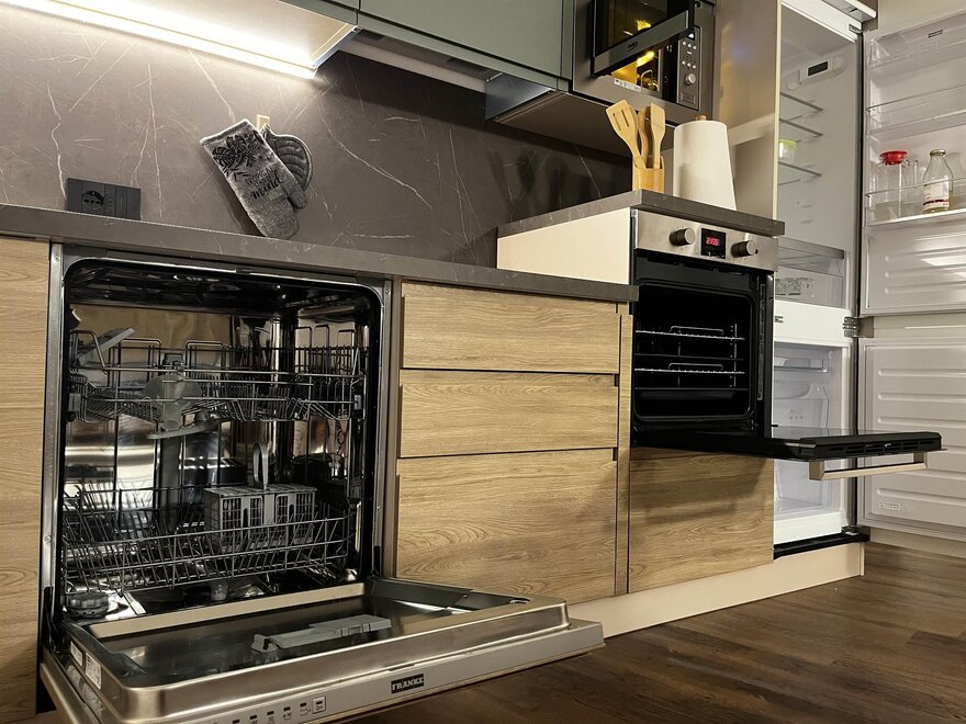 U vindt beddengoed en handdoeken in de inventaris. De keuken is uitgerust met alles wat u nodig heeft en omvat een koelkast, vriezer, inductiekookplaat, oven, magnetron en vaatwasser.