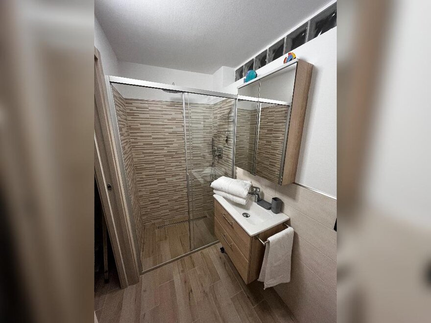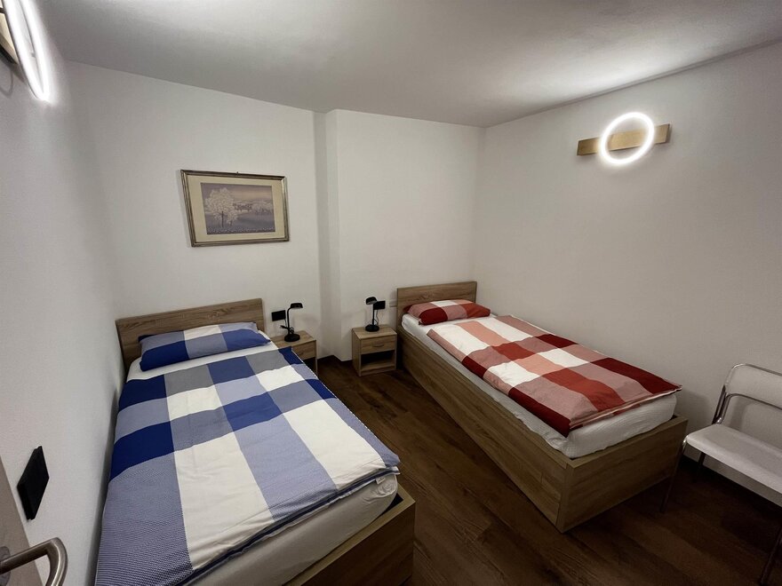 Het appartement is recent gerenoveerd en is samengesteld uit een ruime woonruimte die een woonkamer en keuken omvat, twee badkamers, een slaapkamer met een klein balkon en een slaapkamer met twee eenpersoonsbedden.