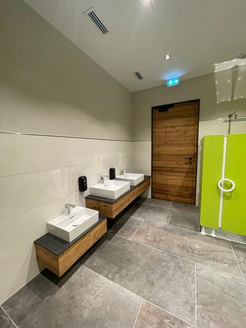 De prijzen van de plaatsen zijn inclusief gebruik van alle aanwezige voorzieningen in de accommodatie, met warm water, handzeep en toiletpapier.Inrichting badkamer