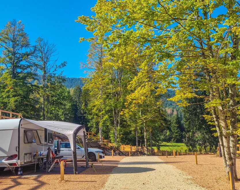 De Comfort-plaatsen zijn plaatsen die zijn gewijd aan degenen die de nabijheid van de voorzieningen willen, zonder in te boeten op de onderdompeling in de natuur. Ze zijn aangelegd met een grindondergrond en bieden elektriciteitsaansluiting van 220V/16A (op verbruik, 0,70€ per kWh), afvoer voor grijs water en in de zomer toegang tot drinkwater. Het zijn plaatsen die worden aanbevolen voor tenten of voertuigen tot 7 meter.