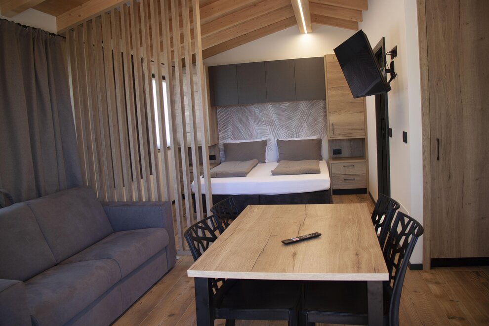 Wij bieden 84 plaatsen in 4 types: Nature, Nature XL, Comfort en Comfort XL verevend op 8 terrassen met panoramisch uitzicht op Folgaria. We denken aan iedereen! Kinderen kunnen zich vermaken in de mini club, tieners kunnen het tegen elkaar opnemen in de IWALL zaal, terwijl volwassenen ontspannen in de bar of in het wellnesscentrum, dat ook toegankelijk is voor externen.