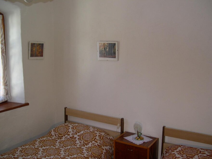 Oostzijde appartement, met onafhankelijke toegang bestaande uit: woonkeuken met uitgeruste kast, houtkachel, gaskookplaat, gasoven, koelkast met vriezer; een slaapkamer met een tweepersoonsbed (170 x 190 centimeter) voorzien van dekens, een kledingkast met vier deuren, een ladekast met vier lades en een slaapbank; een slaapkamer met twee eenpersoonsbedden (85 x 190 centimeter) voorzien van dekens, met een kledingkast met twee deuren; badkamer met wastafel, bidet, wc, douchecabine en wasmachine, warm water wordt geleverd door een gas doorstromer; een overdekt terras van ongeveer 25 m²; een privéparkeerplaats die indien nodig ook overdekt is; container voor gescheiden afvalinzameling. Huisdieren toegestaan.
