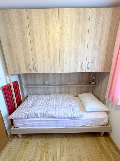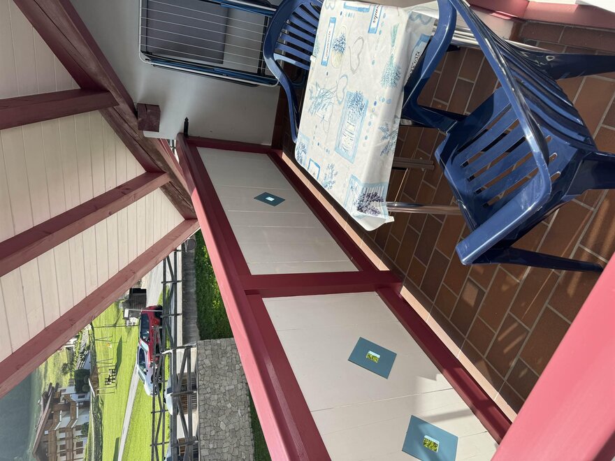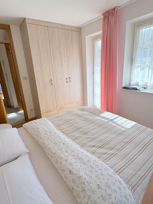 Appartement op de tweede verdieping, bestaande uit een slaapkamer met een tweepersoonsbed, een eenpersoons slaapbank in de woonkamer, een badkamer met douche, wasmachine, woonkamer met kitchenette, vaatwasser, magnetron en waterkoker, drie balkons.
