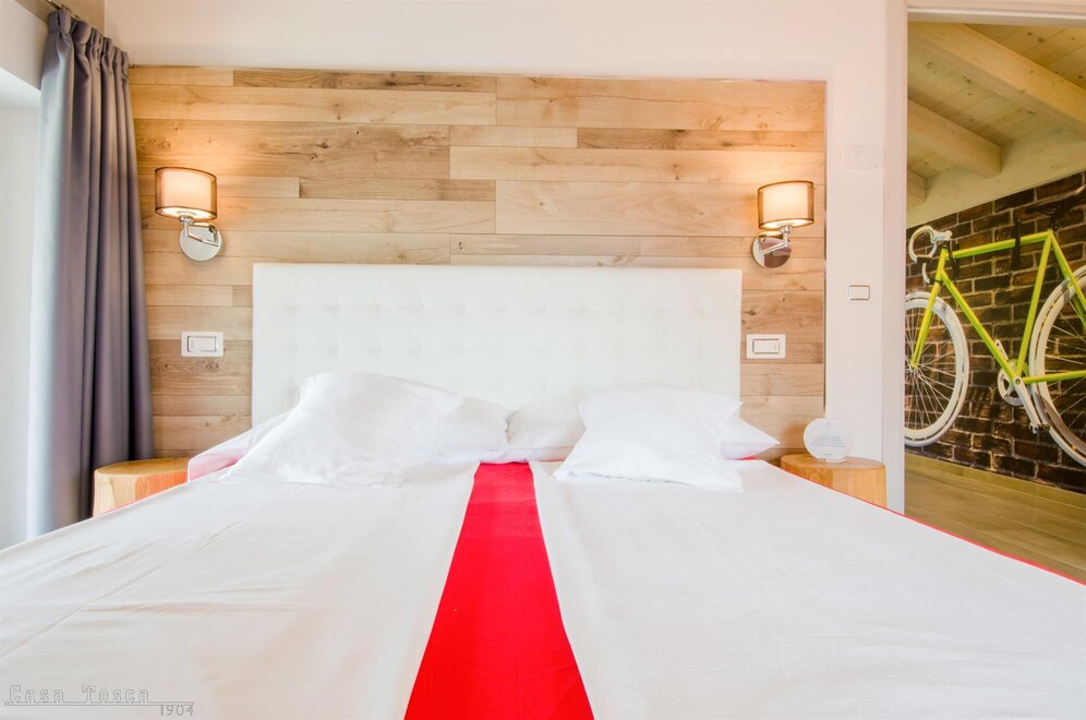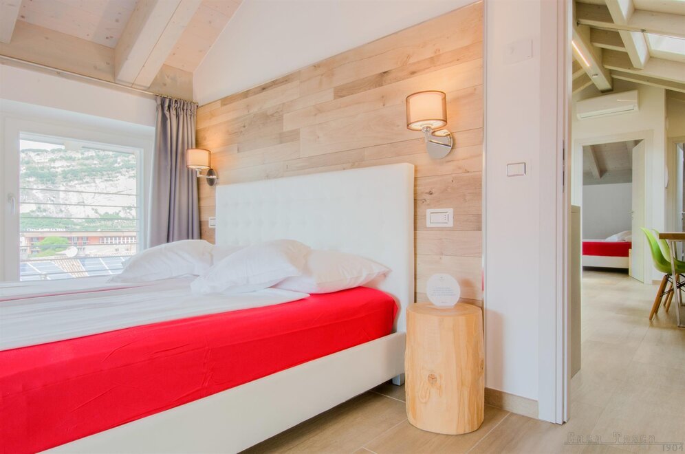 Casa Tosca is een historisch alleenstaand gebouw gelegen in het centrum van Torbole op een rustige locatie, op slechts 150 meter van het meer van Garda. In 2017 volledig gerenoveerd met kenmerken van een klimaatvriendelijk huis, heeft het een strategische ligging als vertrekpunt voor alle fietstochten, wandelingen of watersportactiviteiten die het meer van Garda biedt. Ideaal voor sportieve verblijven. Casa Tosca beschikt over meerdere nieuw ingerichte appartementen in een moderne/scandinavische stijl en uitgerust met de meest actuele comfort zoals toegang met code, airconditioning, gratis snelle WI-FI, vloerverwarming, rookmelder, TV-SAT 50", vaatwasser, gezamenlijke wasmachine, enz... en gemeubileerde buitenruimtes. FIETSENKAMER: met een gemeenschappelijke fietsservice en toegang met code, bewakt door camera's. GARAGE: aan elk appartement is een parkeerplaats toegewezen. ZEIL- WINDSURF: opslag voor materiaal.
