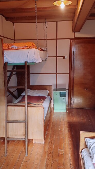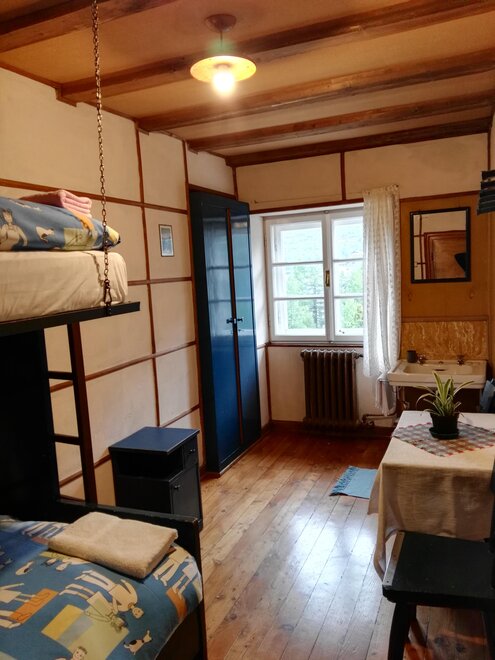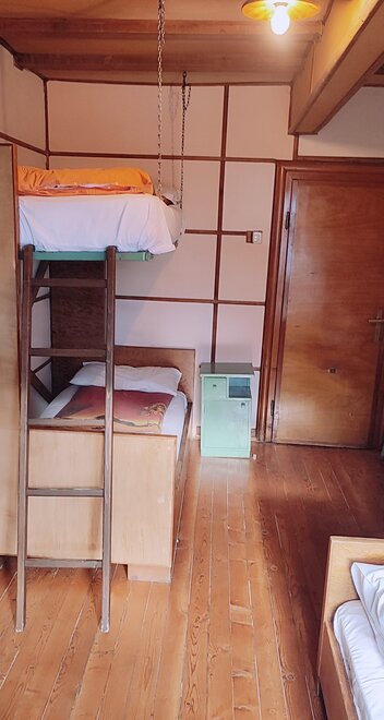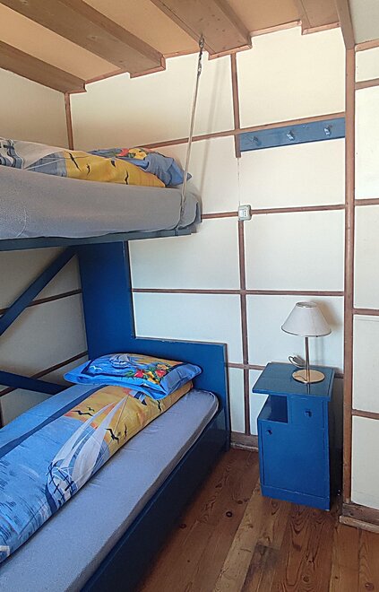 Kamer met stapelbed en gemeenschappelijke voorzieningen op de verdieping. In de kamer zijn beddengoed, dekbed en handdoeken aanwezig en is privé voor 4 personen, minimum 3 personen.