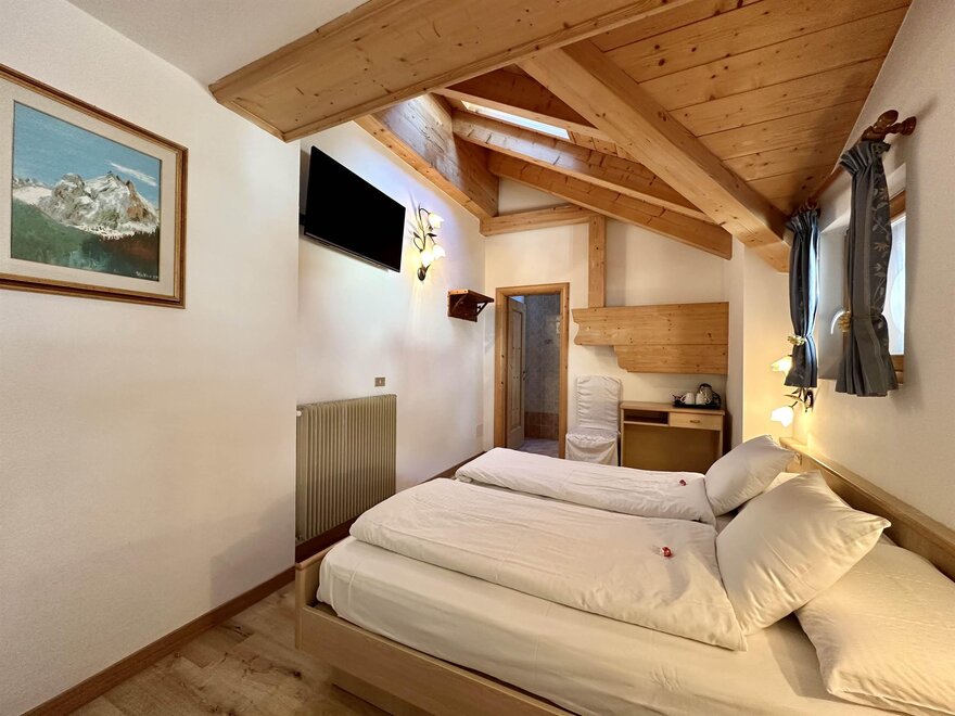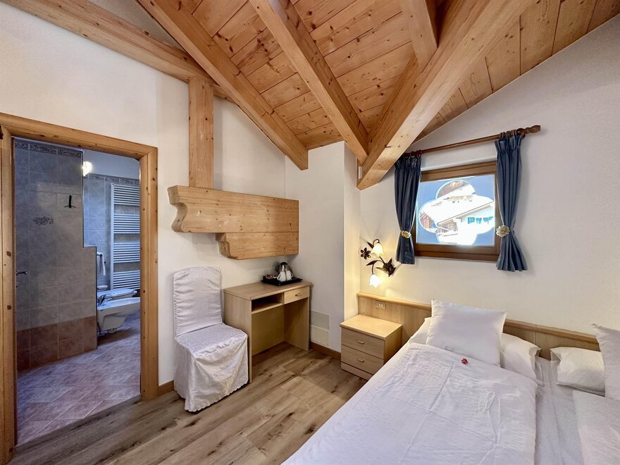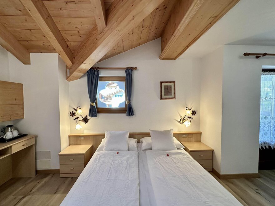Enkele meters na de kabelbaan Canazei - Pecol linksaf, een paar meter verder gaan en opnieuw linksaf, de borden van het hotel volgend.