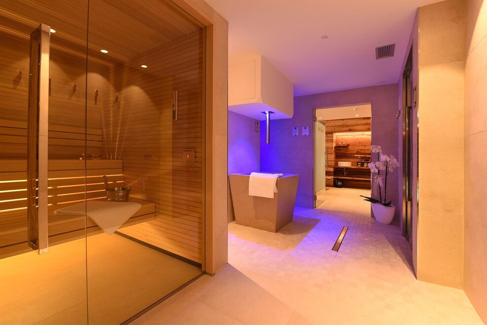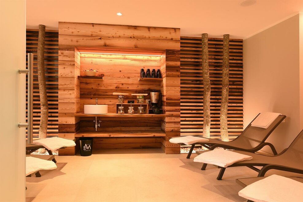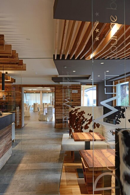 De kamer WOOD is licht en zonnig en biedt vanaf het ruime balkon in natuurlijk lariks een ongestoord uitzicht op de omliggende bergen. De vloer van de kamer is van eikenhout, op de muren verlichten retro-illuminated afbeeldingen van de bergen de natuurlijke show die de gast te wachten staat en zijn tegelijkertijd een uitnodiging tot rust en kalmte.