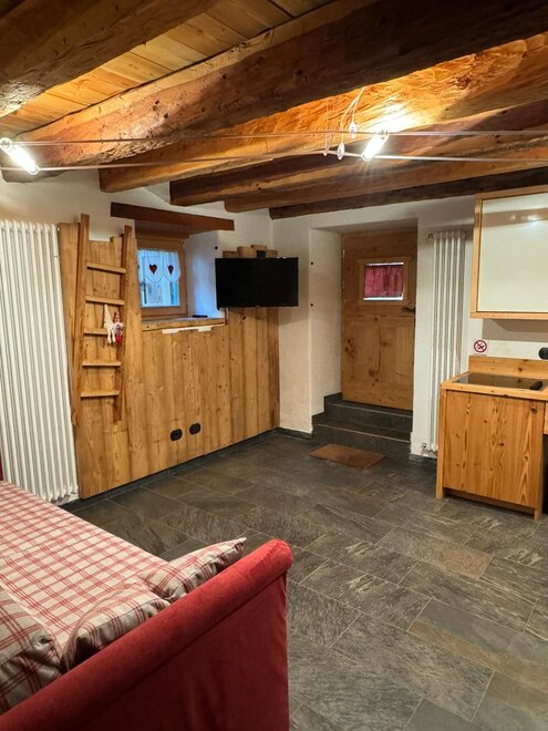 De woonkamer is ingericht met een volledig uitgeruste keuken, inclusief kookplaat, koelkast, vaatwasser, kleine oven, tafel, bank en kast; de slaapkamer heeft een tweepersoonsbed en een eenpersoonsbed. De badkamer heeft een ruime douche. In de wasruimte bevindt zich de wasmachine en een wasbak. Het kan worden gebruikt als opslag voor ski's en skischoenen.