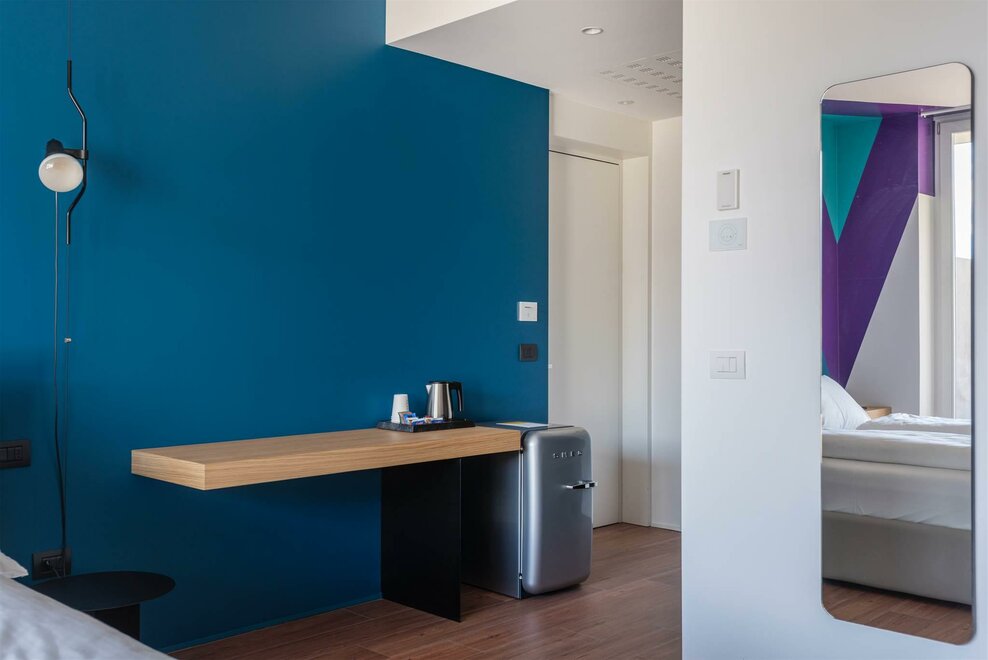 Happy Room is de oplossing voor wie op zoek is naar eenvoud, comfort en stijl. Binnen vind je alles wat je nodig hebt voor je rust: een groot kingsize bed met Dorelan ReActive® matras, een flatscreen TV, de SMEG sportbar en een badkamer met douche.