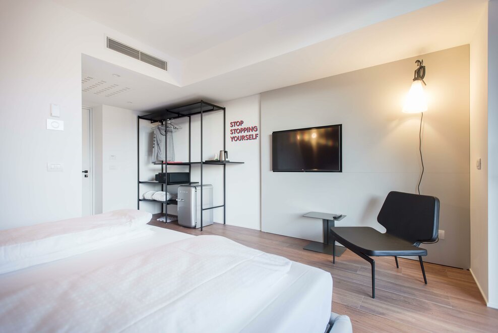 Alle kamers hebben een eigen balkon en zijn ingericht met designelementen die de HOODY-stijl weerspiegelen.