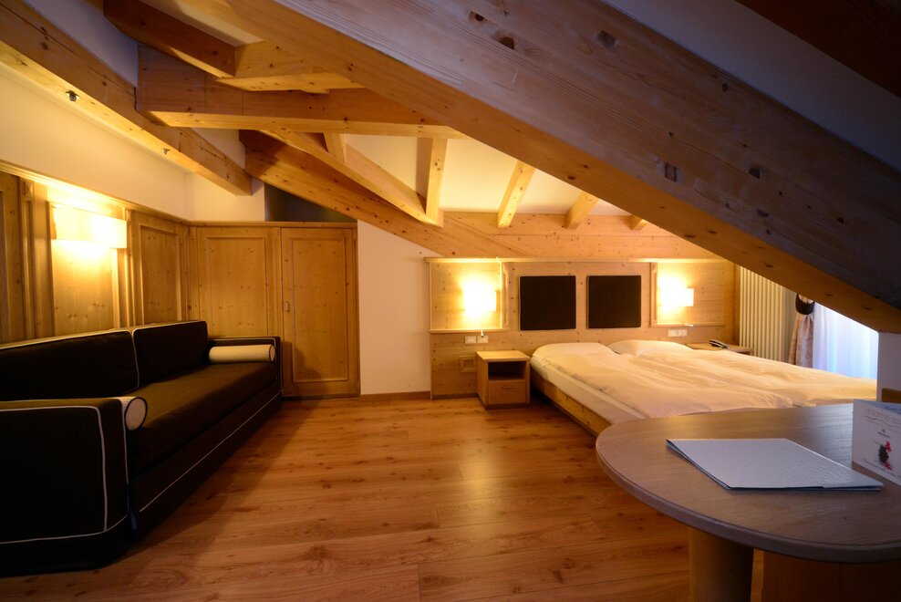 Onze gloednieuwe Relax Wood kamers van 24 m² zijn ingericht in alpine stijl met zorgvuldig geselecteerde natuurlijke materialen om u de charme en warmte van de bergen te laten ervaren, dankzij het originele oude sparrenhout en vintage stoffen. Ze zijn gericht op het Hotel en hebben geen balkon.