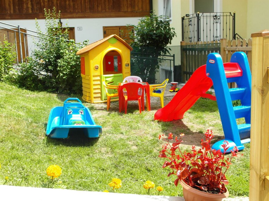 In de tuin is er een hoek met enkele speelmogelijkheden voor kinderen.