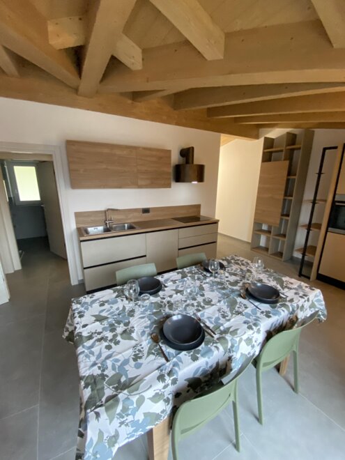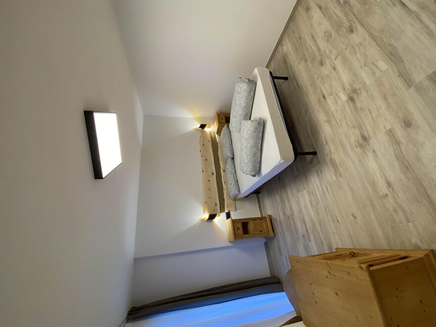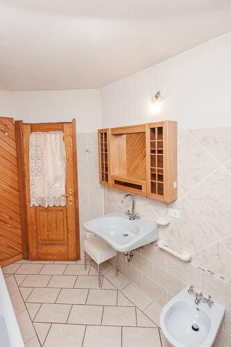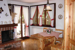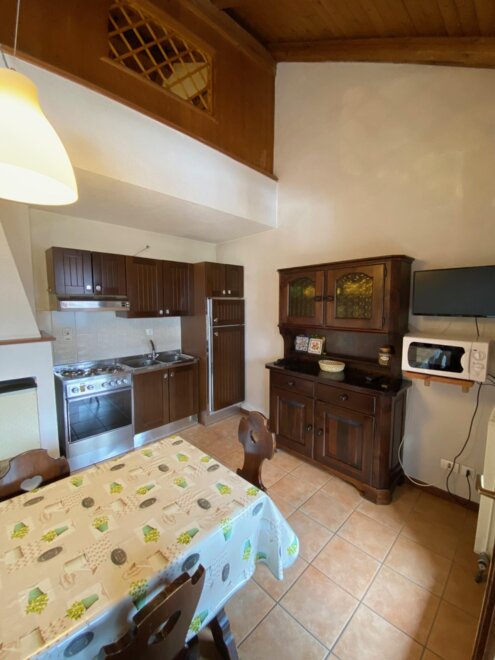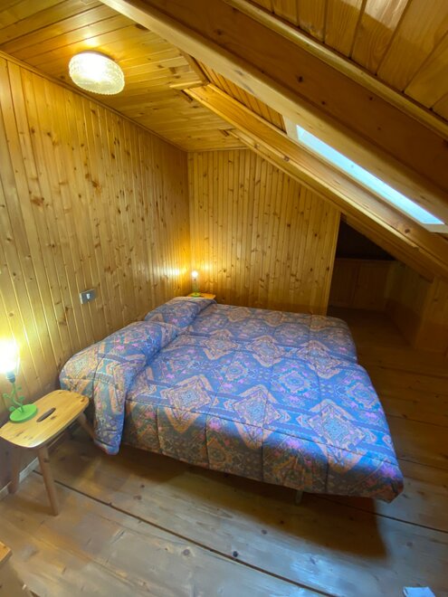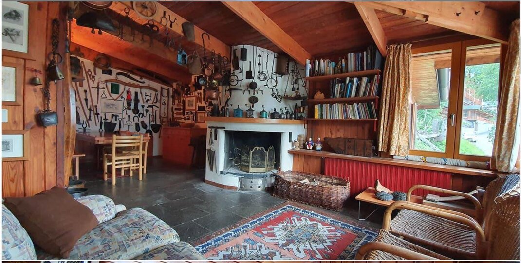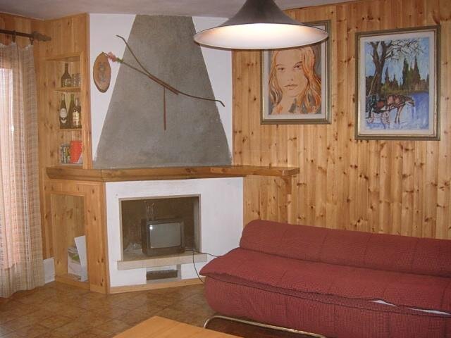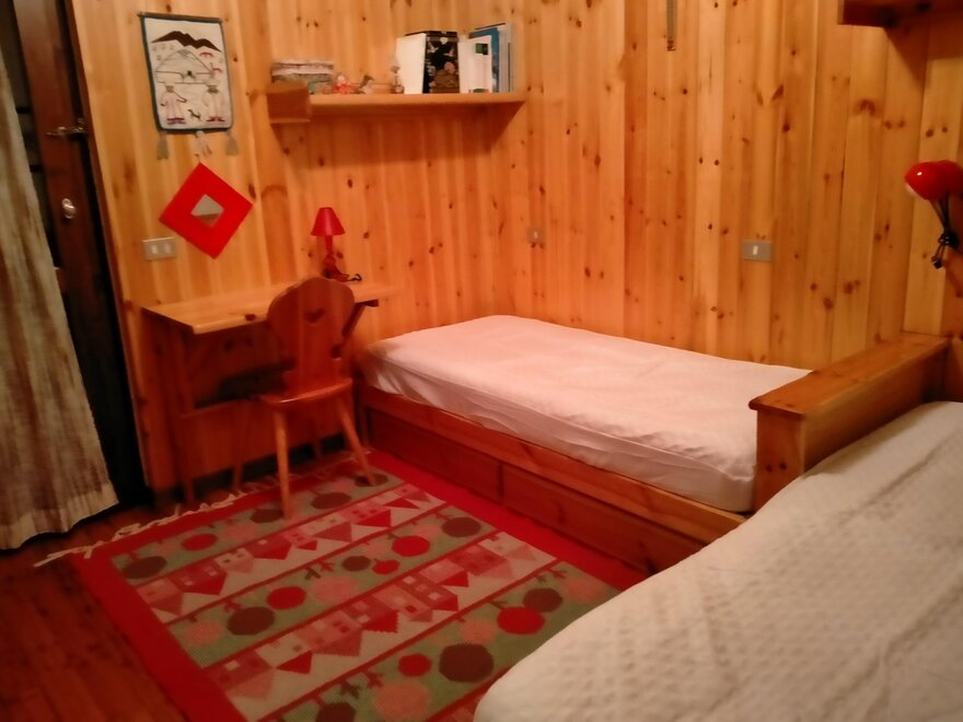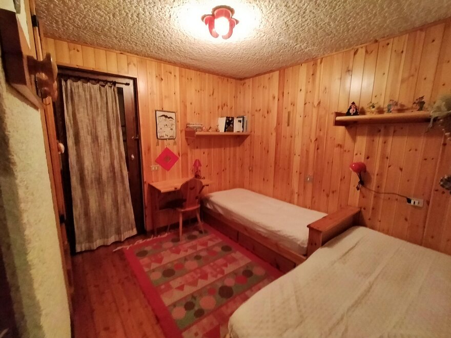 EEN NACHT IN HET MUSEUM... Appartement dat toegankelijk is via een externe trap. Typieke bergstijl, ruime woonkamer met prachtig uitzicht, ingericht met relikwieën van oude ambachten. Gescheiden keuken met vaatwasser en wasmachine. Twee persoons slaapkamer en nog twee kamers met een eenpersoonsbed en een hoog bed.