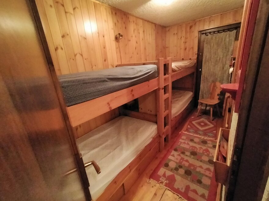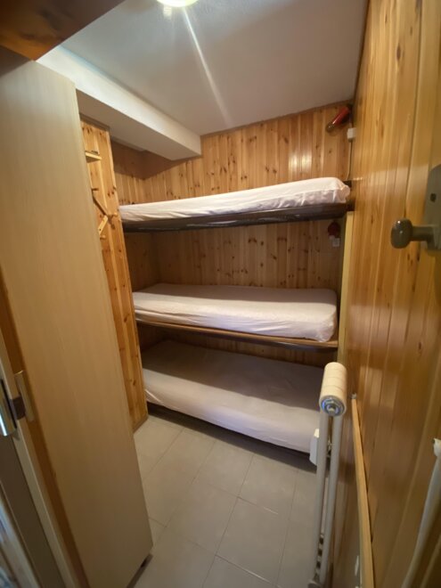 Driekamer-appartement voor 4 personen met twee slaapkamers, een tweepersoonsbed en een stapelbed.