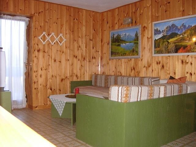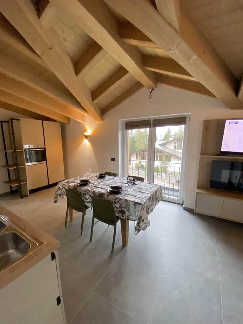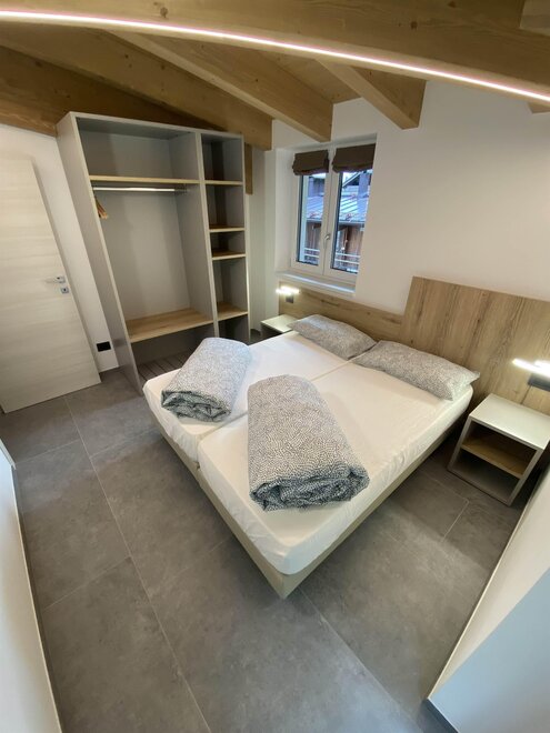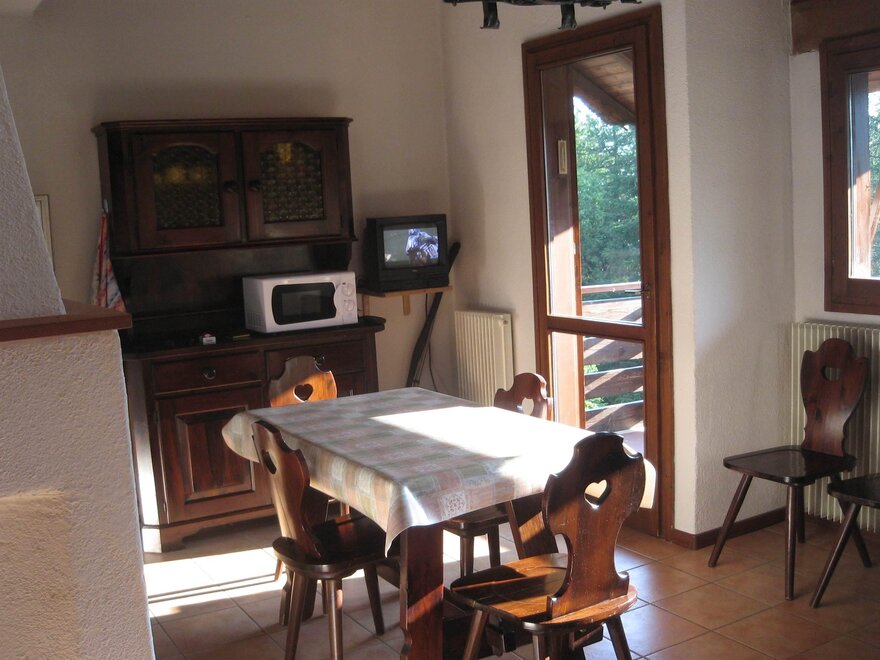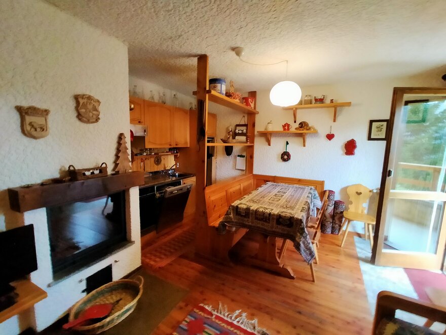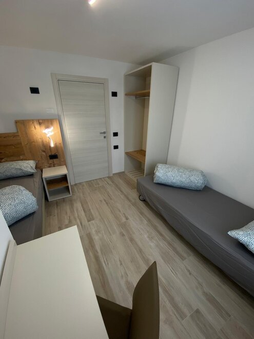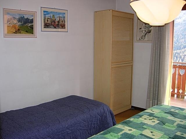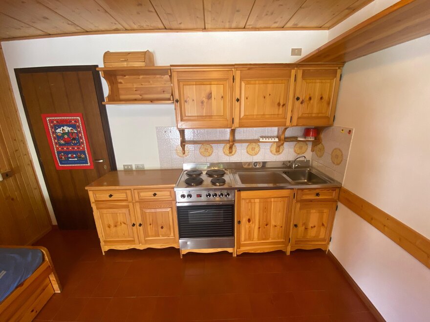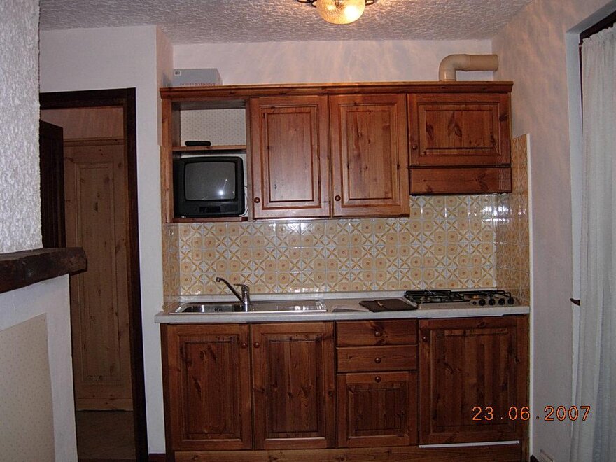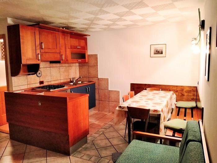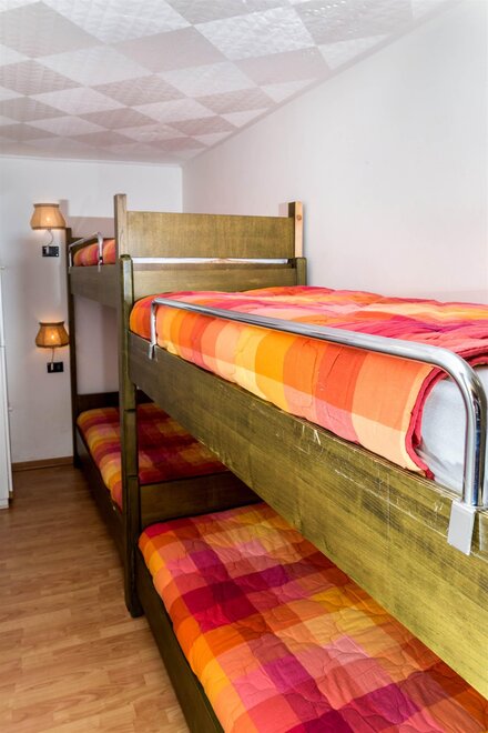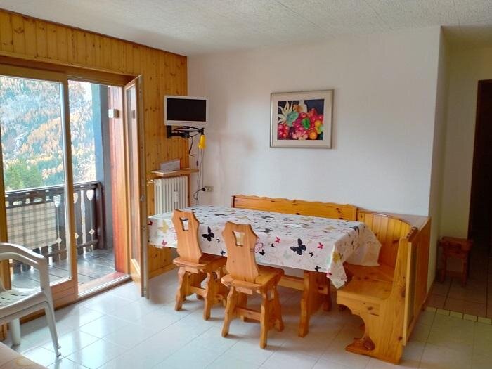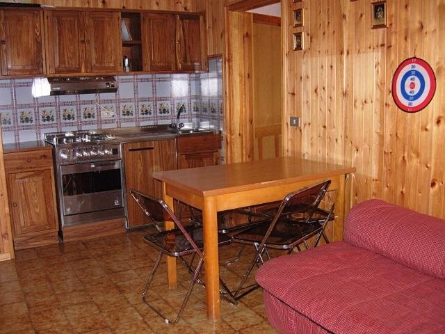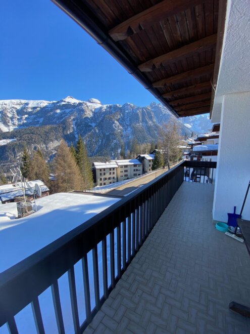 Driekamerappartement heel dicht bij de piste, bestaande uit een woonkamer met keuken, een slaapkamer, een kamer met twee eenpersoonsbedden (samen te voegen), badkamer en ruime, onafhankelijke balkon.