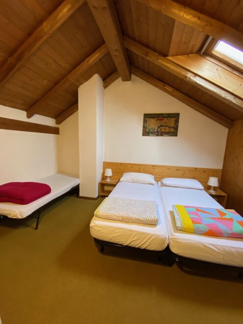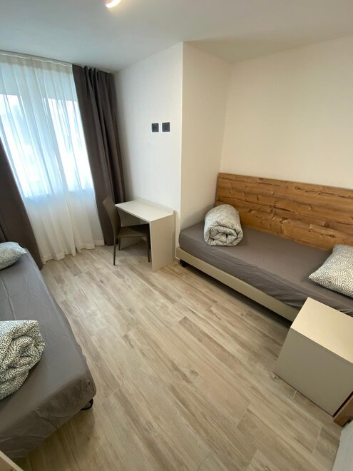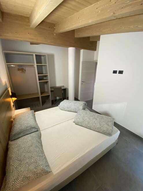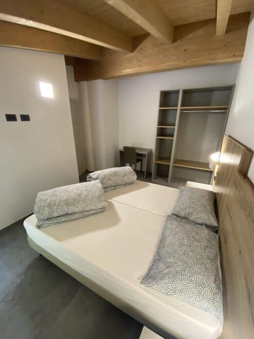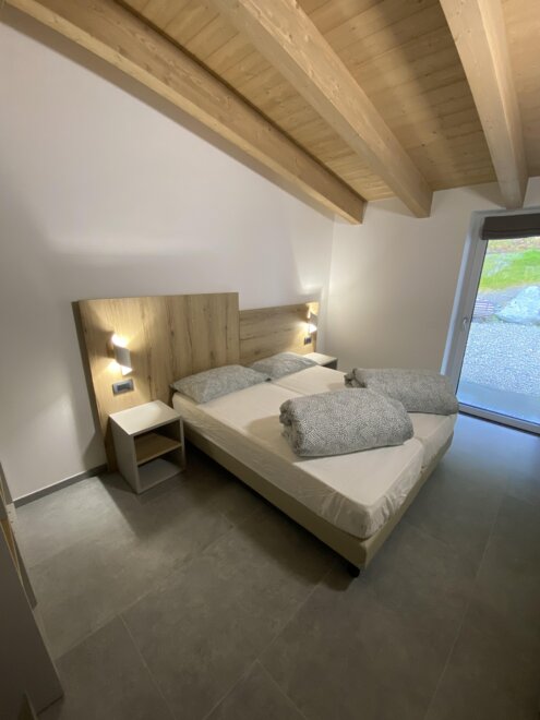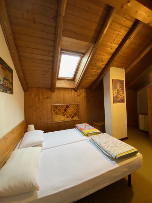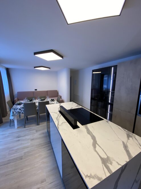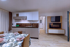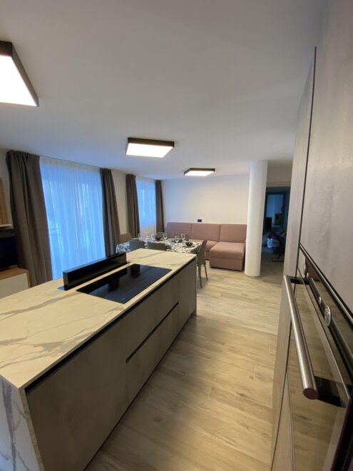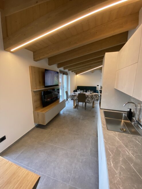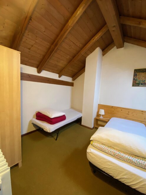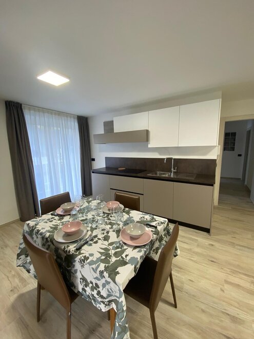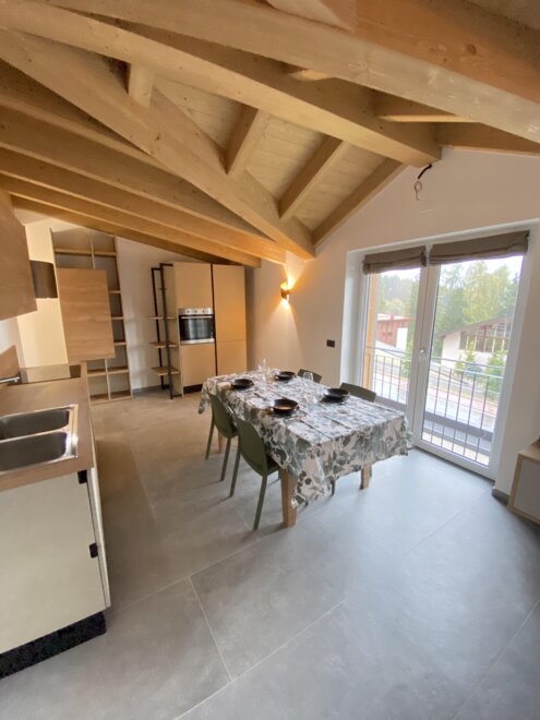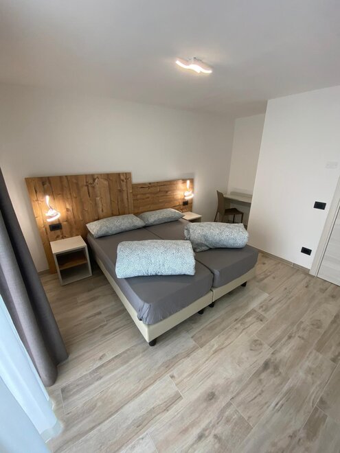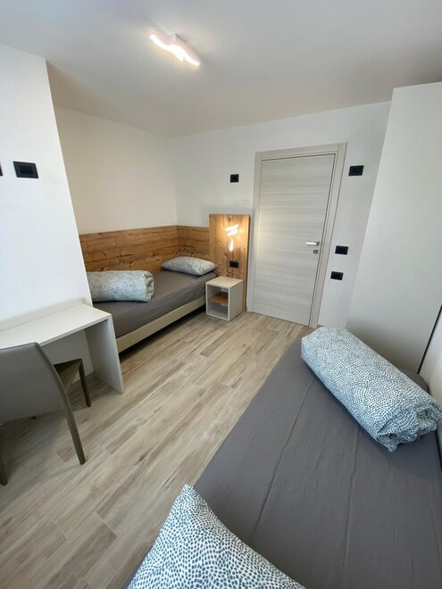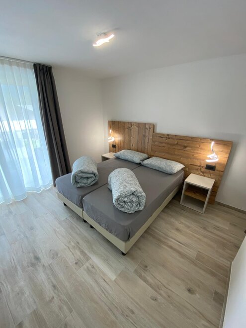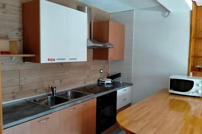 Driekamerappartement heel dicht bij de piste, bestaande uit een woonkamer met keuken, een slaapkamer, een kamer met twee eenpersoonsbedden (samen te voegen), badkamer en ruime, onafhankelijke balkon.