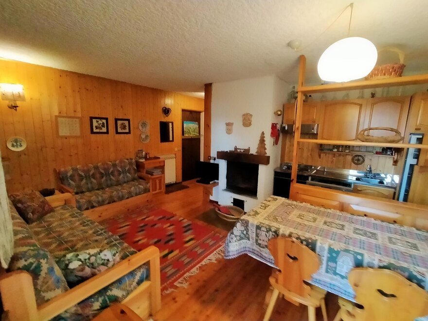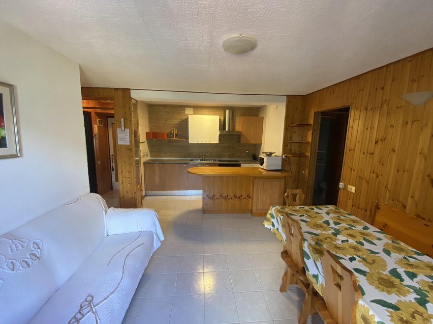 BILOCALE met een slaapkamer met een tweepersoonsbed, woonkamer met balkon, een eenpersoonsbed en een slaapbank van anderhalve plek. Aparte, volledig uitgeruste keuken. Compleet doucheruimte. Gelegen in een gebouw met een lift, zeer gemakkelijke toegang tot de piste, met een uitgang vanuit de skikamer direct op de piste. Inclusief parkeerplaats, dagelijkse schoonmaak en beddengoed en handdoeken aangeboden.
