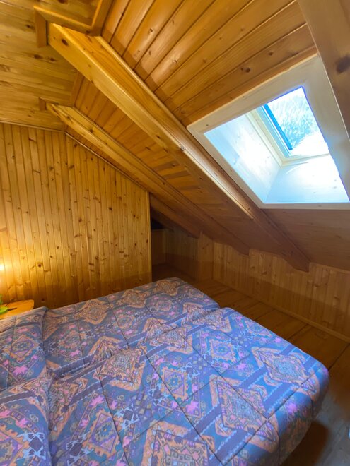 Appartement op de tweede verdieping, ingang in de woonkamer met balkon en uitzicht, eenvoudige keuken met gas en grote koelkast, douche badkamer. Slaapkamer met een tweepersoonsbed. Op de bovenverdieping een vide met een trapje en drie eenpersoonsbedden