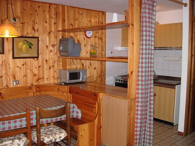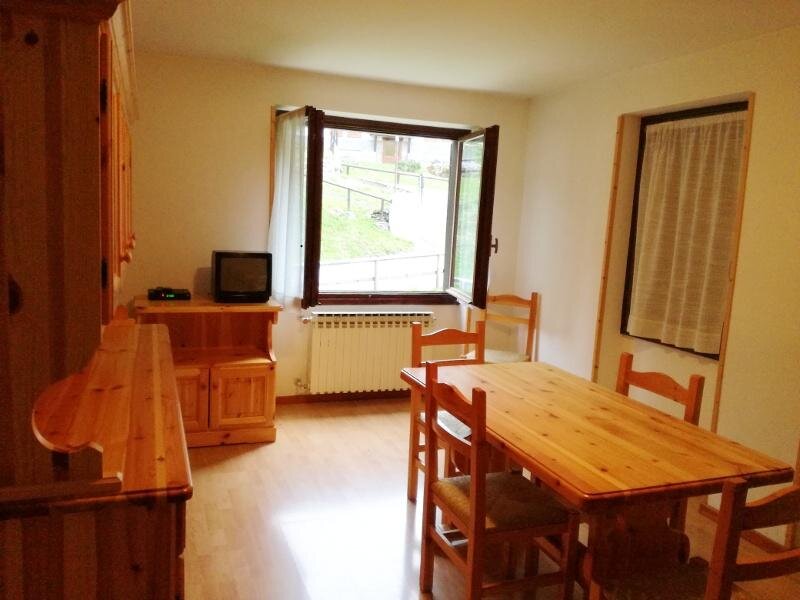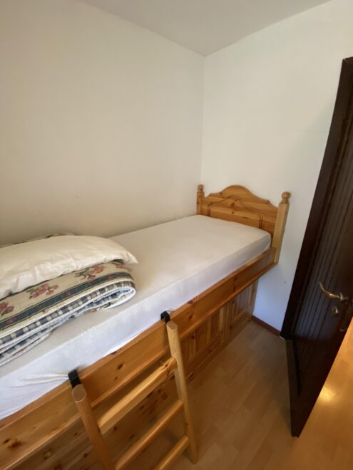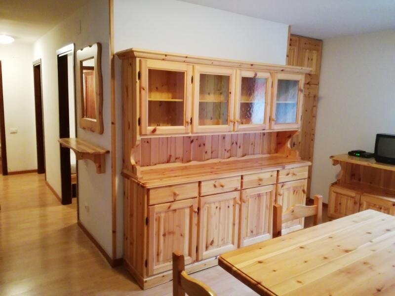 Appartement op de derde verdieping met lift, dichtbij de blauwe pistes. Bestaat uit een ingang, gang, aparte kitchenette van de woonkamer, woonkamer met ramen op de begane grond en een slaapbank. Slaapkamer met tweepersoonsbed en toegang tot het balkon. Kamer met een eenpersoonsbed en een stapelbed. Badkamer met douche, WC, bidet en wastafel. Zeer eenvoudig maar comfortabel appartement. Skikamer en gemeenschappelijke ruimtes in het gebouw.