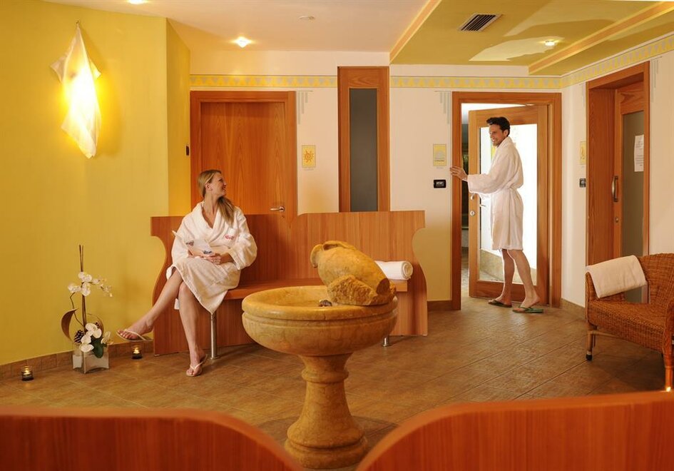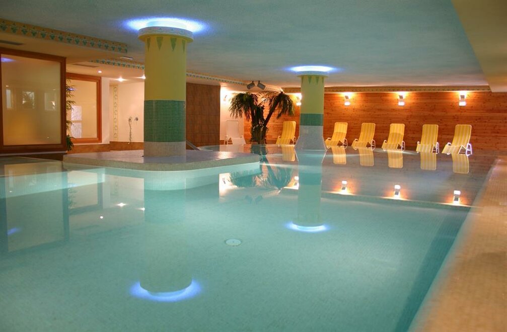 In een rustige omgeving, aan de rand van het bos, ongeveer 700 m van het centrum, met een zeer handige skibus die alle skigebieden verbindt. Wellnesscentrum met overdekt zwembad, sauna, Turks stoombad, bubbelbad, koude mist, kneipp, solarium, fitness.