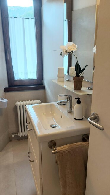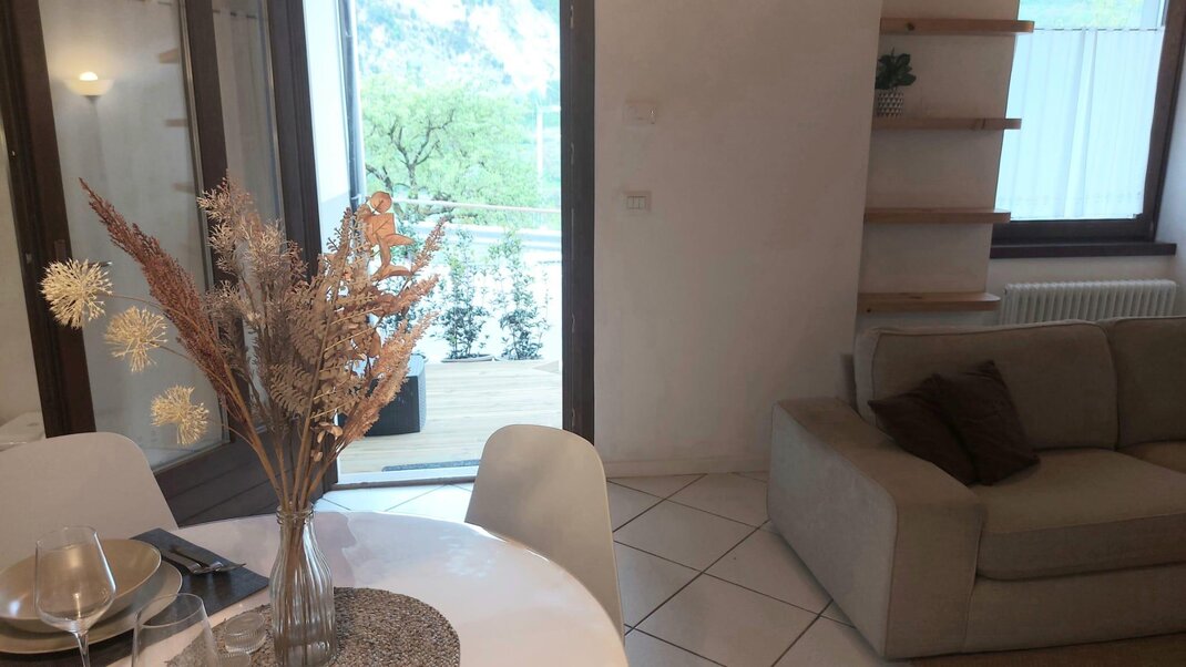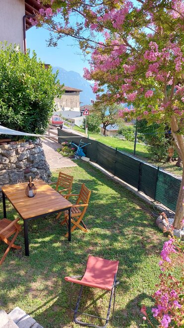 Het appartement is gelegen in het middeleeuwse dorp Tenno, 428 meter boven de zeespiegel, een betoverende plek en een alternatief doel voor wie van het meer houdt en op zoek is naar een rustiger locatie. Het beschikt over een bijzondere ligging tussen de mediterrane omgeving van het Gardameer en de omliggende bergen, daarnaast kan men genieten van de prachtige vijver.