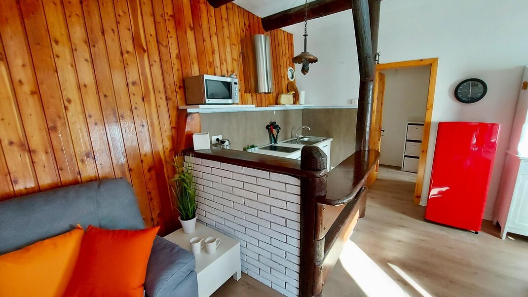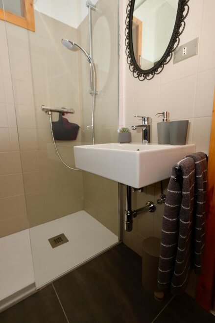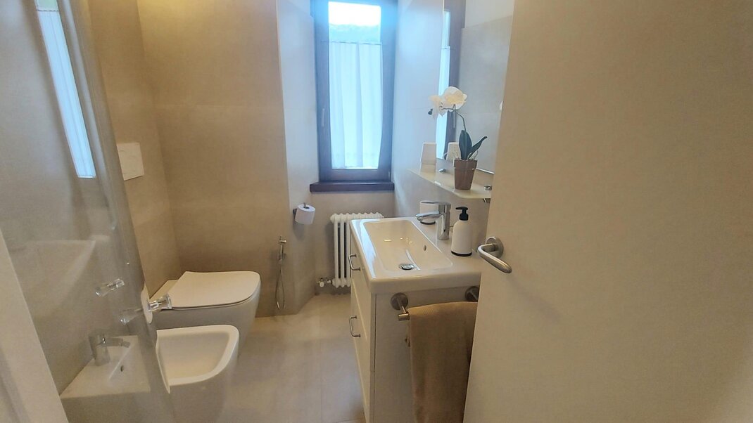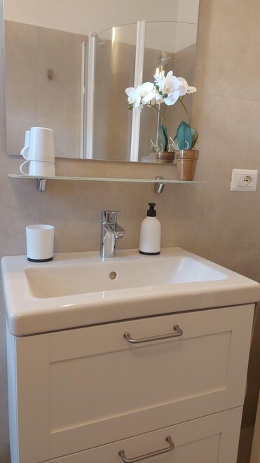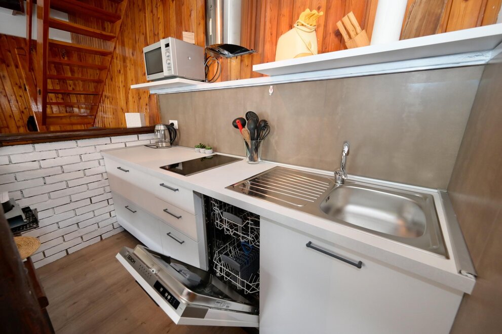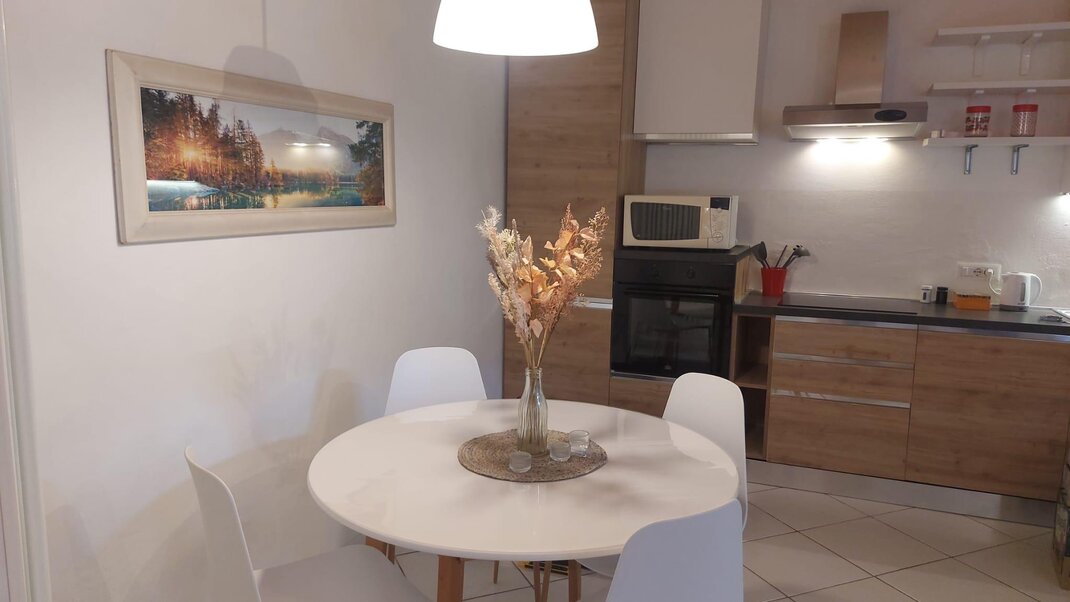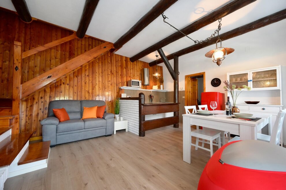 Het bestaat uit een woonkamer en keuken met pannen, serviesgoed, vaatwasser, koelkast, inductiekookplaat met 4 pitten, oven, magnetron, waterkoker, Italiaanse moka voor koffie. Badkamer met douche. Slaapkamer met tweepersoonsbed. Bedlinnen en handdoeken altijd bij de prijs inbegrepen. Specifieke containers voor afvalscheiding zijn aanwezig.