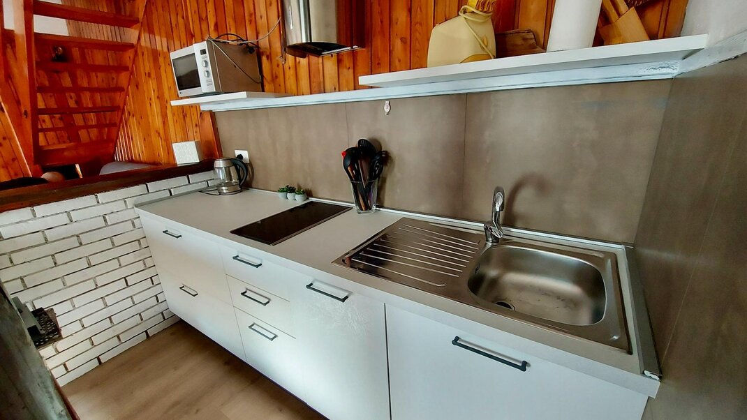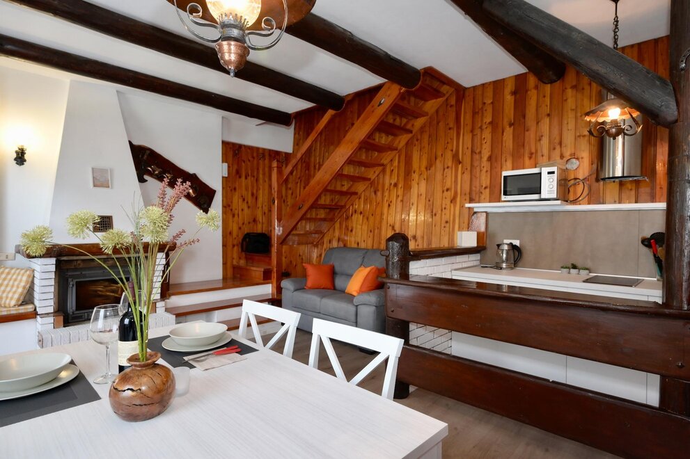 De begane grond bestaat uit een keuken met pannen, servies, vaatwasser, koelkast, kookplaat met twee inductiekookplaten, magnetron, broodrooster, waterkoker, Italiaanse moka voor koffie. Eet- en woonkamer met open haard en satelliet-tv, badkamer met douche. Op de bovenverdieping zijn er twee slaapkamers, een met een tweepersoonsbed en een met stapelbedden, badkamer met douche en balkon. Bed- en badlinnen zijn altijd bij de prijs inbegrepen. Er zijn containers voor gescheiden afval.
