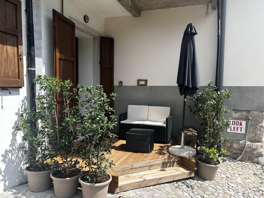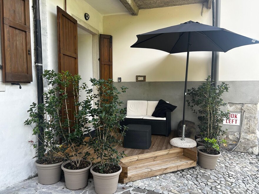 Heerlijk appartement van ongeveer 43 vierkante meter in het middeleeuwse dorp Tenno, perfect voor 2 personen met een klein buitenpatio en een aparte ingang.