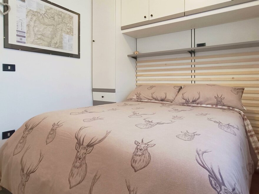 De oplossing "Familie" heeft een kamer met een tweepersoonsbed en een tweede kamer met twee eenpersoonsbedden. De oplossing heeft een privé badkamer die gedeeld wordt tussen de twee kamers. Beide kamers kijken uit op de tuin en de bergen van de Val Rendena.