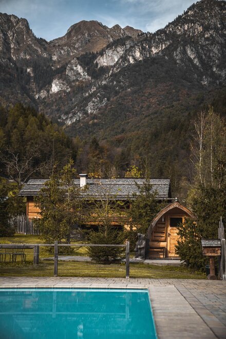 Natuur, binnen en buiten. De geur van hout, het belangrijkste materiaal van de Ledro Mountain Chalets, zal je overspoelen met een gevoel van natuurlijk welzijn. Vanuit het grote hoofdraam zal het natuurlijke spektakel je de adem benemen!
