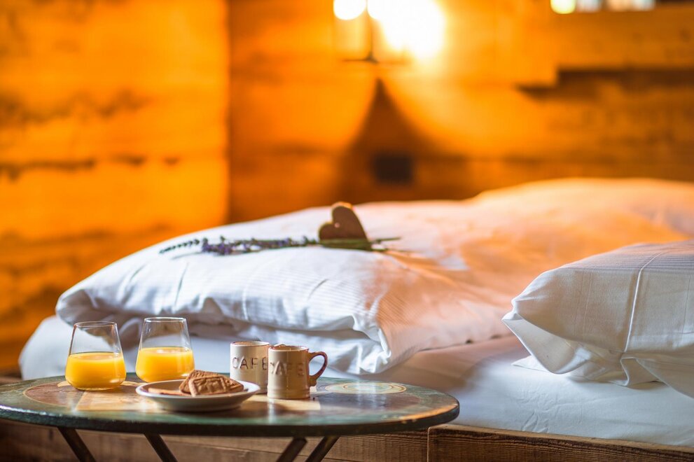 Geïnspireerd door de fascinerende berghutten bieden de chalets een warme welkom, dankzij de natuurlijke materialen die verbonden zijn met het gebied en de traditie.
