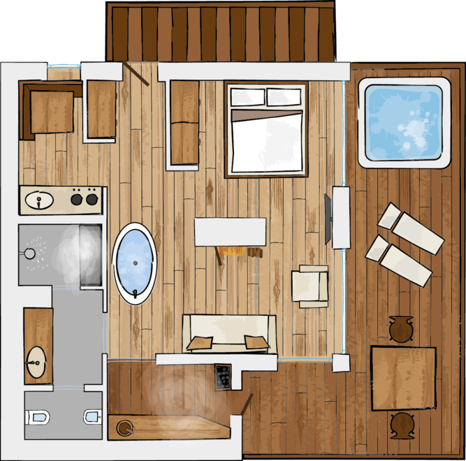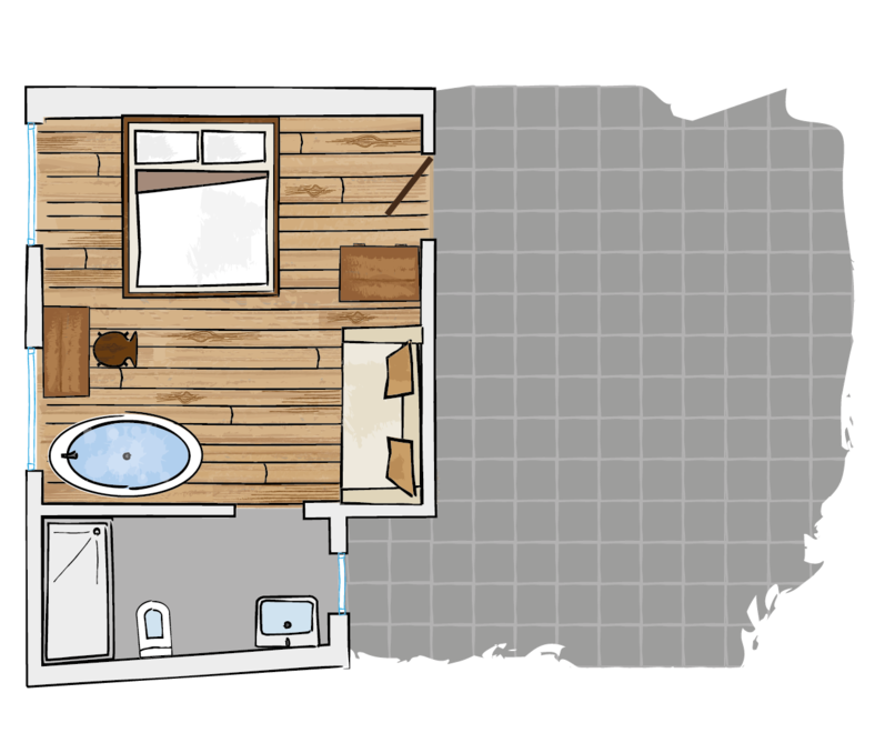 In het Superior Chalet heeft u de beschikking over een privé-sauna onder het chalet, voor het beleven van welzijnsmomenten in volledige intimiteit.